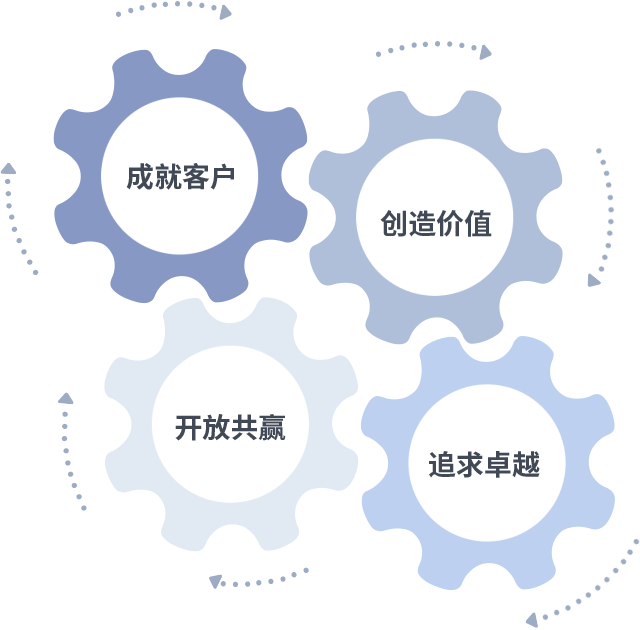 成就客户是一切决策的出发点,创造价值是衡量所有工作的标准,追求卓越是DB多宝视讯做事做人的态度,开放共赢是DB多宝视讯的格局也是最终的结果。价值观的齿轮环环相扣,推动着组织里的每个人不断向前。